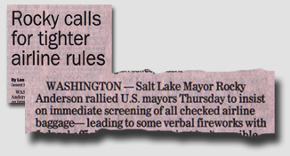 Following the tragic events of 9/11, Mayor Anderson vigorously pushed for 100% screening of checked luggage at airports throughout the country. He won unanimous support of the US Conference of Mayors for his proposal that Congress immediately require comprehensive screening of checked luggage at our nation's airports.