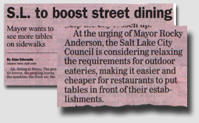 The City has added 154 new parking stalls and calmed traffic along 300 South in the Central Business District, which has helped to significantly increase revenues for nearby restaurants, clubs and retailers. The mayor has worked with the Downtown Alliance to implement a program that permits Downtown businesses to provide tokens customers can use for buses, light rail, parking meters, and parking in Downtown lots. Rocky has worked to change ordinances, resulting in far more outdoor dining, more interesting signage, and the allowance of street artists and other performers. Mayor Anderson's administration has also brought more events to Downtown, which have increased the revenues for Downtown businesses, while providing for more interesting, vibrant, community-building gatherings.