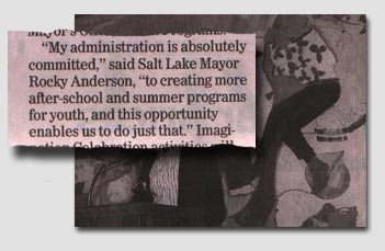 Mayor Rocky Anderson has, for many years, worked on youth programs in Salt Lake City, including his service for 15 years as a volunteer with Guadalupe Schools. Under his leadership, Salt Lake City has undertaken unprecedented efforts to provide nurturing, engaging, and effective opportunities for young people throughout the community.