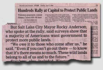 The mayor's initiative, "Salt Lake City Green," is widely recognized for its effectiveness in reducing greenhouse gases and health-endangering pollutants. Because of this model program, which resulted in a decrease of more than 1,000 tons of equivalent CO2 emissions during the first year, the EPA sponsored Mayor Anderson's participation in a 2002 United Nations conference in New Delhi. Rocky spoke at that conference about how local governments throughout the world can take effective measures to reduce greenhouse gas emissions and other dangerous pollutants.