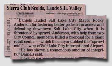 Rocky views our Downtown as an important gathering place for the Salt Lake City community – a place where everyone comes together for working, for commerce, for shopping, for entertainment, and for dining. Mayor Anderson has identified many of the pieces of the downtown-revitalization puzzle and has taken many effective measures to bolster and enliven Downtown.