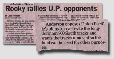 Rocky continually works to bring in more west side businesses and to create community-building retail/restaurant nodes in various parts of the west side. Rocky also fights in every way possible to mitigate the negative effects of the reactivation of the Union Pacific railroad line near 900 South and, over the long term, to reduce or completely eliminate railroad traffic along that line.