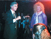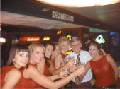 We couldn't find a seat, so we just stood near the bar, chatting and observing the local color. Occasionally, friendly locals invited me to their tables to introduce me around or to discuss city issues. There I was, just minding my own business and getting a good start on a night that would prove to the world that Salt Lake City offers a fine time to Friday-night revelers, when the astoundingly beautiful Utah Bikini Team members appeared - ready to join our little adventure. All six of them: Toni (currently Mrs. Utah), Vickie, Shelly, Valery, Heather, and Corie. (Of course, just to keep a grip on reality, I kept reminding myself that I was part of this group only because I am Mayor; otherwise, there's not one of them that would ever have given my four-eyed self a second look.)